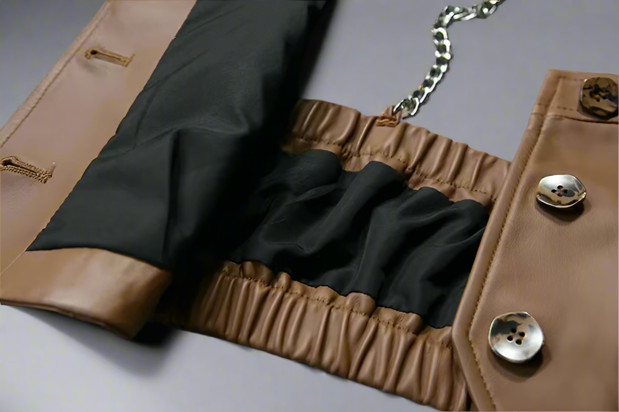 Elevate your style with Denise - our luxurious Leather Tube Top. This sexy and slim-fitting top is crafted from premium leather and features chic chain straps for an added touch of sophistication. Make a statement and turn heads in this exclusive piece.