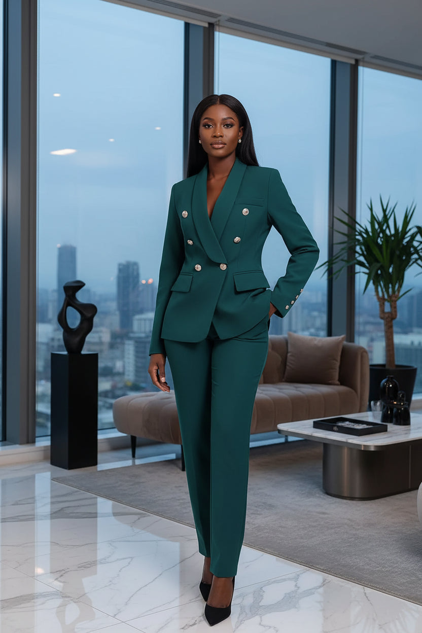 Elevate your wardrobe with the Malia Pant Set, a sophisticated two-piece ensemble featuring a classic double-breasted blazer paired with tailored pants. Crafted from 100% polyester, this set delivers a polished, professional look perfect for the office or special occasions. The structured design offers timeless style without stretch for a crisp, clean silhouette. Easy care with machine wash cold and tumble dry low. Available in sizes S to 2XL with detailed measurements provided for the perfect fit.
