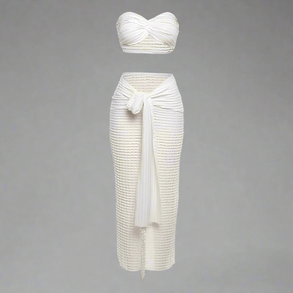 Add a touch of elegance to your summer wardrobe with Gina - the perfect strapless skirt set. Show off your shoulders and keep cool in this versatile and classy ensemble. Perfect for any occasion!