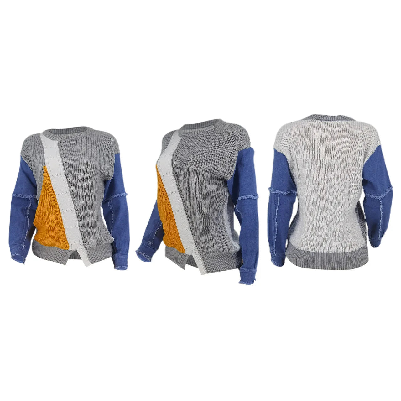 Introducing the Kiki sweater, the ultimate combination of color block and denim! Stay trendy and cozy with this playful and unique piece. Perfect for any casual occasion.