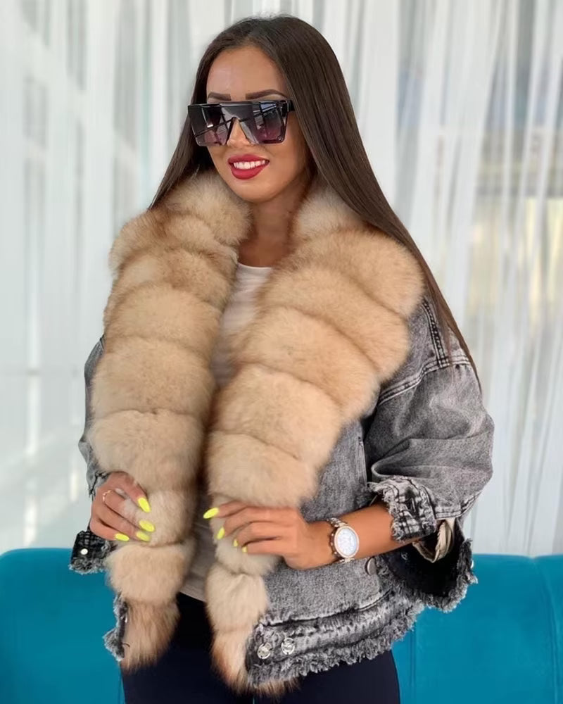 Indulge in luxury with our Kima Denim Jacket. Featuring a lavish fox fur collar, this jacket elevates your style and keeps you warm during colder days. Crafted for women, it's the perfect blend of fashion and function. Upgrade your wardrobe with this sophisticated and exclusive piece.