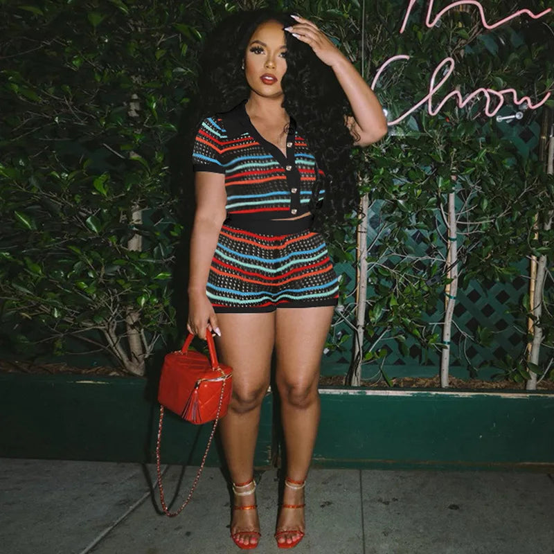 Get ready to rock your sass with the Margo short set. This knitted top features a playful button front and short sleeves, matched perfectly with the sassy shorts. Show off your quirky side and stay comfortable in this fun and stylish set.