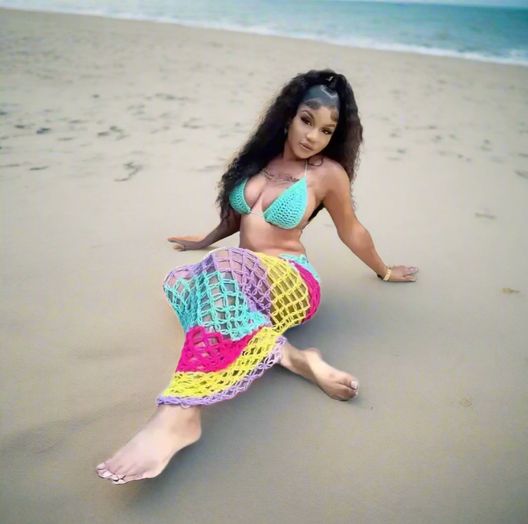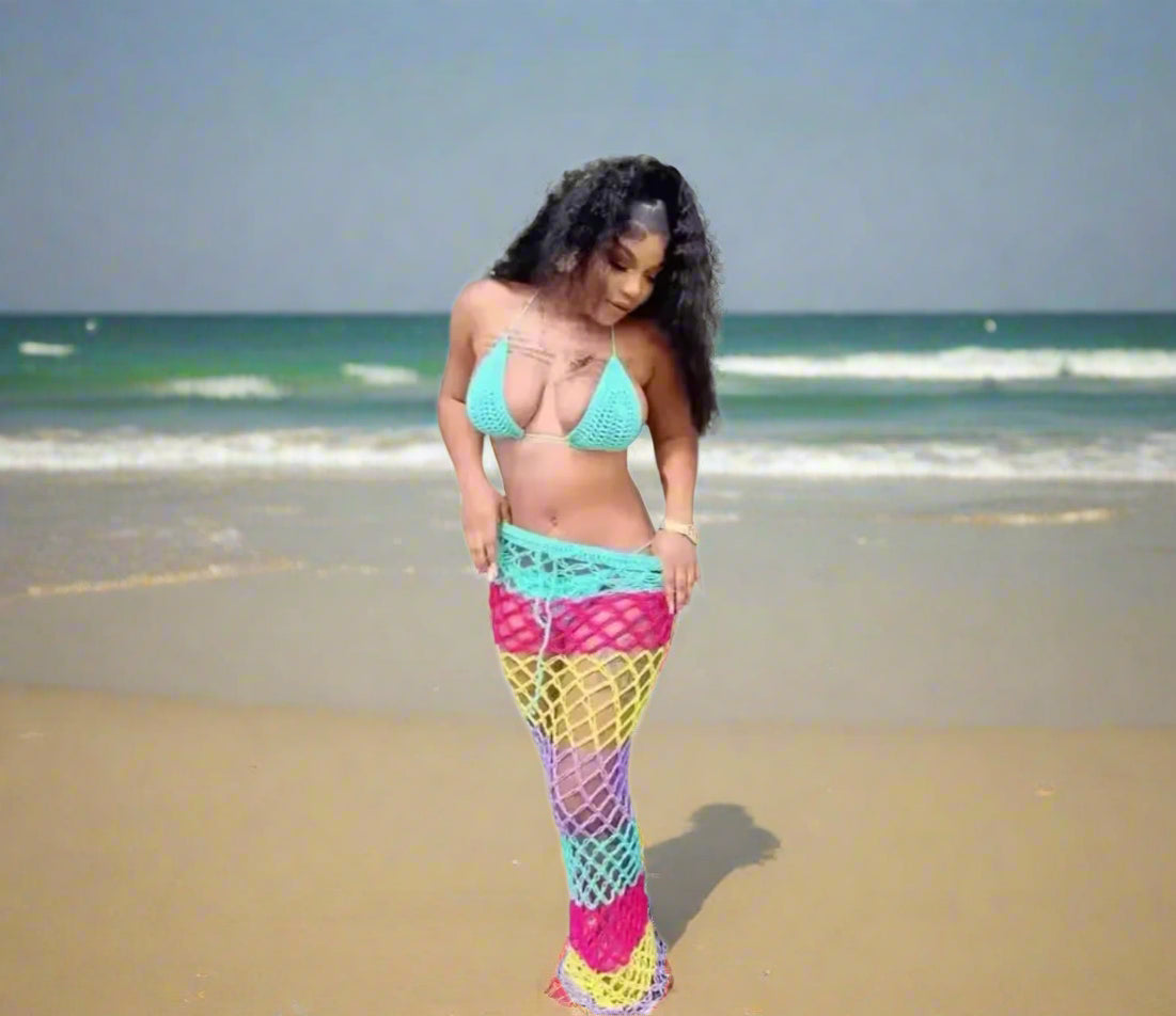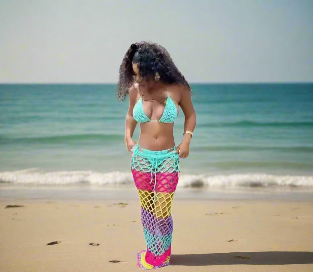 The Maxine 3 Piece Crochet Swimwear Set combines a sexy bikini with a playful long skirt, perfect for turning heads by the water. This breezy, stylish set offers just the right mix of flirty and comfortable, making every beach day feel like a fun getaway.