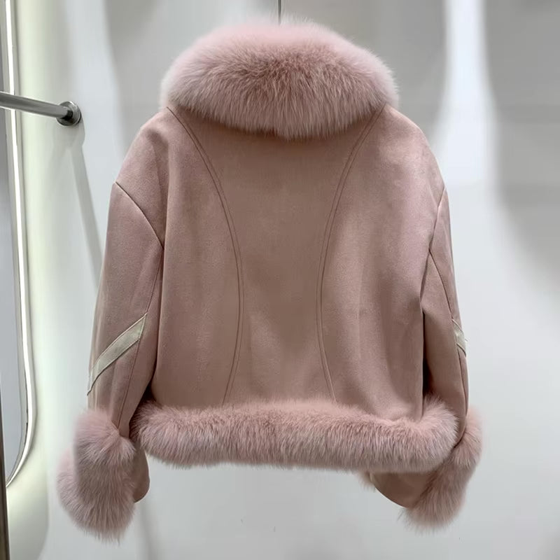 Sabrina - Fox Fur Collar and Cuffs Short Merino Wool Jacket