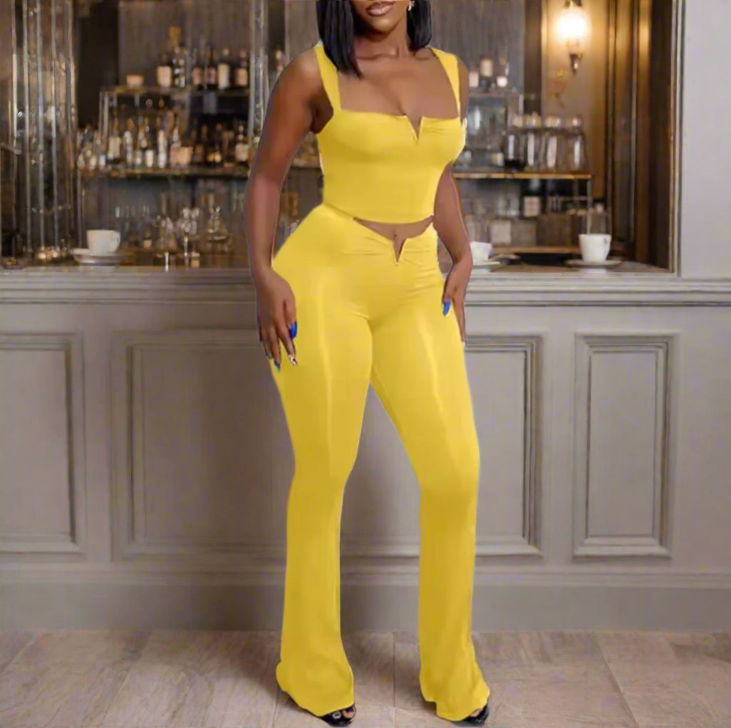 Unleash your inner diva with our Tracey Pant Set! This sassy two-piece ensemble hugs your curves in all the right places while keeping comfort in check. Perfect for turning heads at brunch or dancing the night away, this set brings the perfect blend of flirty and fabulous to your wardrobe. Strut your stuff!